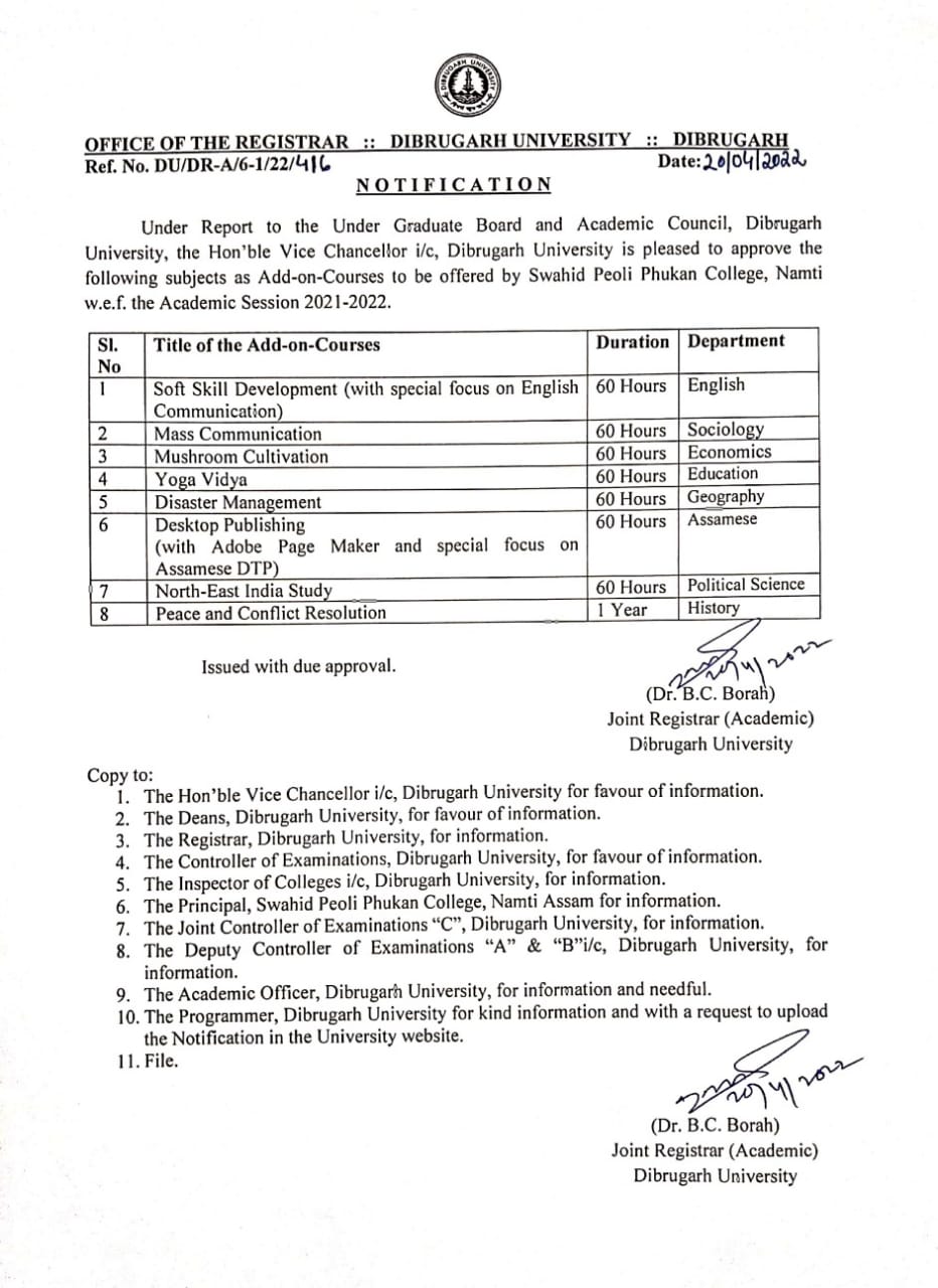 This institution was established in a rural ambience and has withstood the test of time. During these eventful years, Swahid Peoli Phukan College has carved a niche for itself in the field of higher education with special emphasis on the need of the hour. Apart from interactive classroom facilities, the college has been dedicated to creating an inspirational environment for learning through extracurricular activities and educational tours.